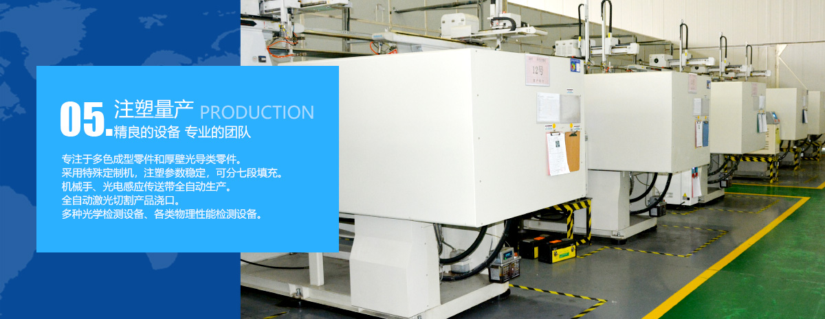 ????????公司自2016年發展延伸出獨立的產品事業部,主要以注塑生產車燈多色零件、車燈光導、厚壁透鏡類產品為主。依靠公司強大的模具制造經驗,我們快速成立了獨立的產品事業部,工廠面積3000平方米,總投資... more +